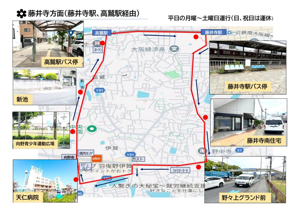 「藤井寺駅」「高鷲駅」「古市駅」から