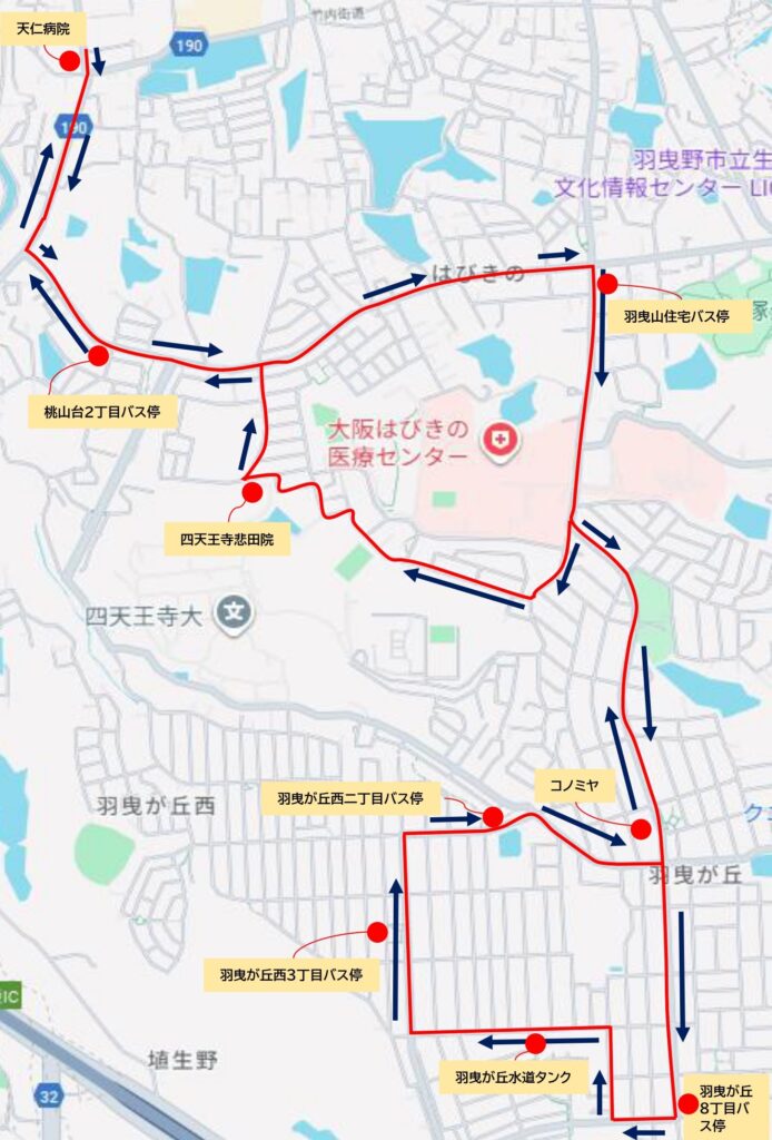 羽曳が丘方面 時刻表・ルート
